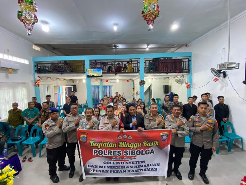 Sibolga Sumut Tribunnews86.com- – Polres Sibolga melaksanakan kegiatan Minggu Kasih sebagai upaya menyampaikan himbauan dan pesan-pesan keamanan dan ketertiban masyarakat (Kamtibmas) guna terciptanya situasi yang aman dan kondusif di wilayah Kota Sibolga. Kegiatan yang berlangsung di Gereja Pentakosta Indonesia (GPI) di Jalan Camar Ujung Lingkungan II Kelurahan Aek Muara Pinang, Kecamatan Sibolga Selatan, berlangsung dengan lancar pada pukul 10.30 WIB hingga selesai, Minggu (12/10/2025).